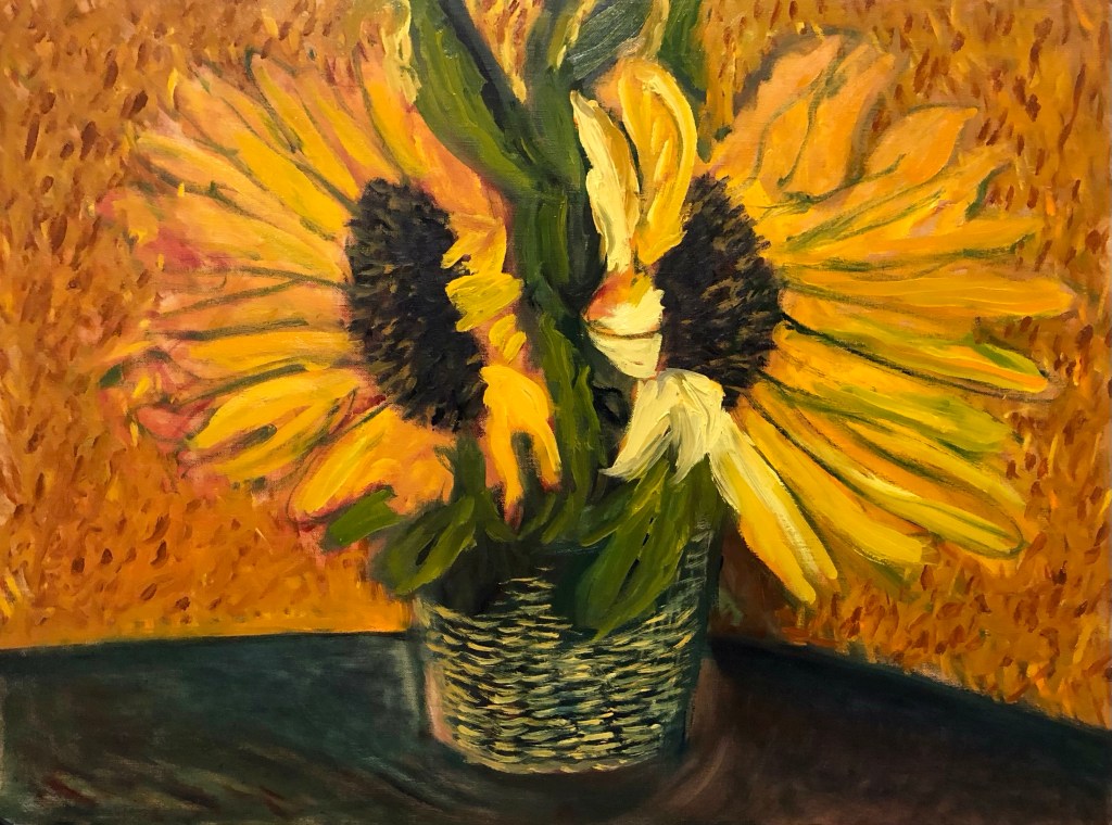 Ten thousand sunflower paintings. That’s probably an understatement. I was going to name this “Not Vincent” but thought it was to cliched and never intended to make it look like his work. Its hard not to think about his iconic offerings when you paint sunflowers. Maybe its a right of passage- I don’t know. The truth is it was hard to make this a unique work or even “not remember his”. It represents my vision and color of the grandest flower, the King of Flowers for all painters.
