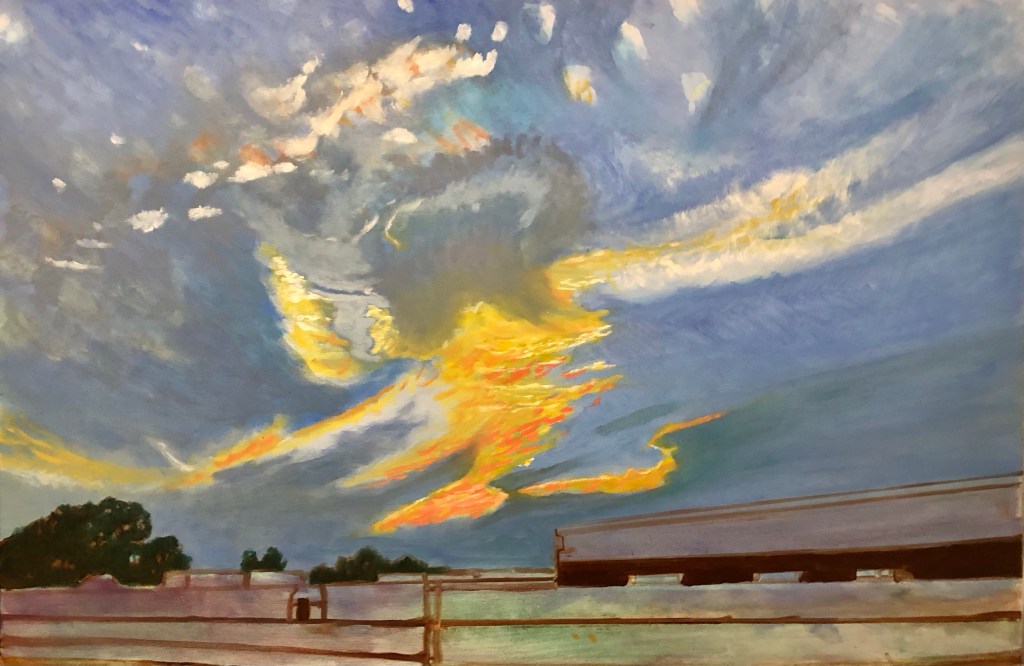 Sunrise Cloudburst, 24×36 inches, Oil on Canvas, 2024