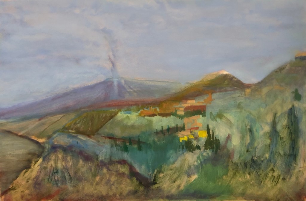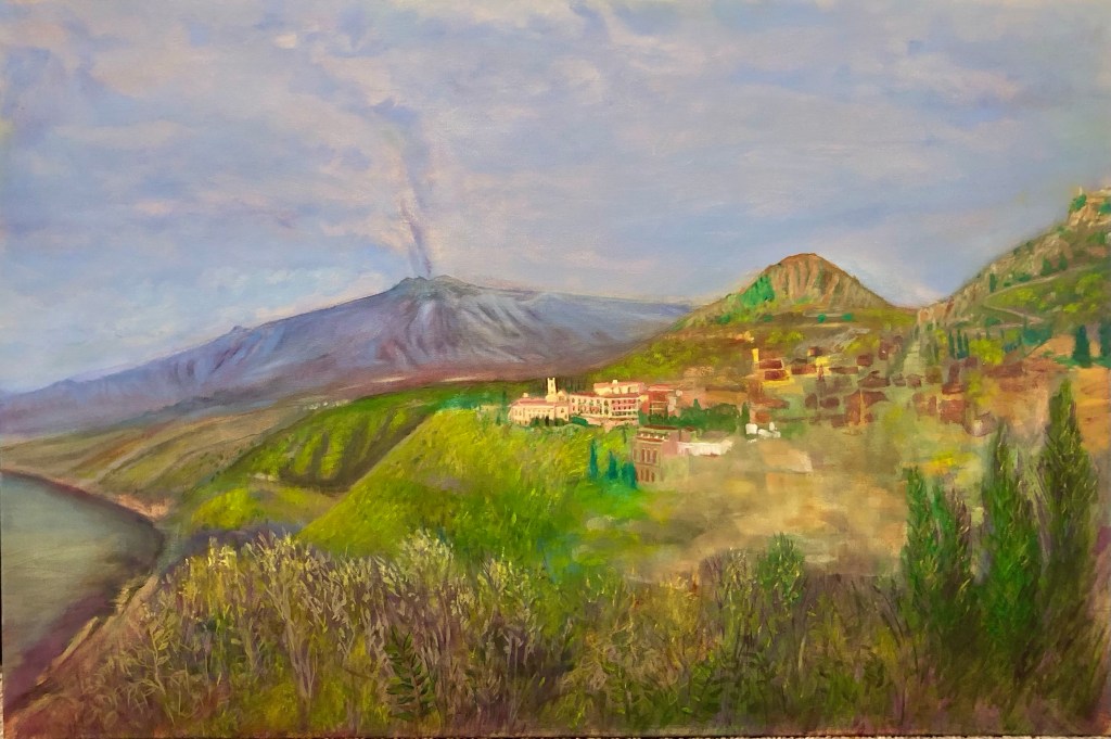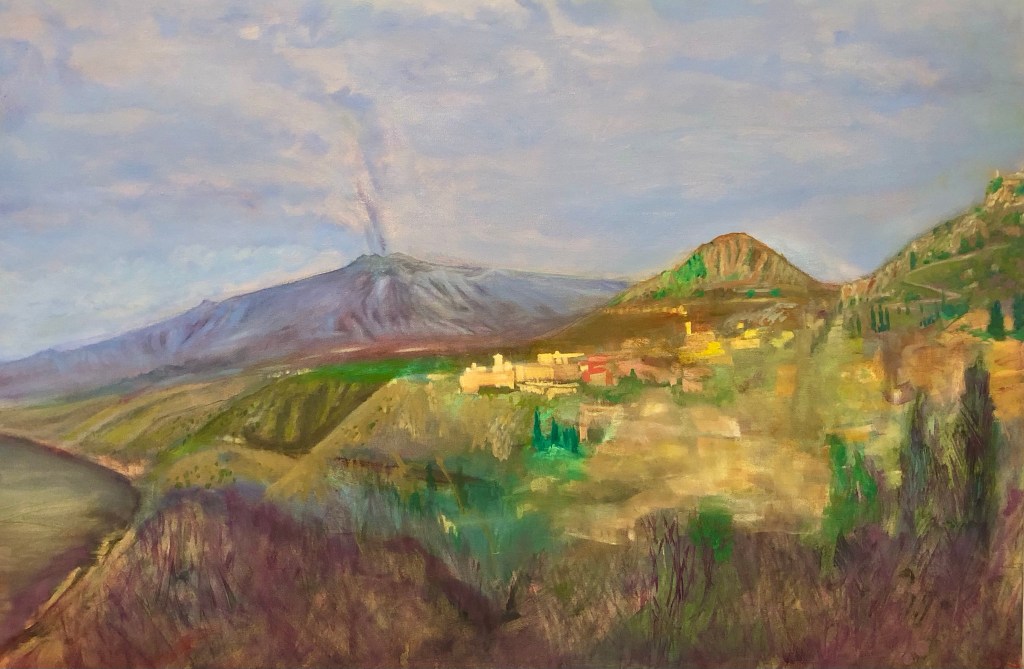 Mount Etna, View of Taormina, 24×36 inches, Oil on Canvas, 2025